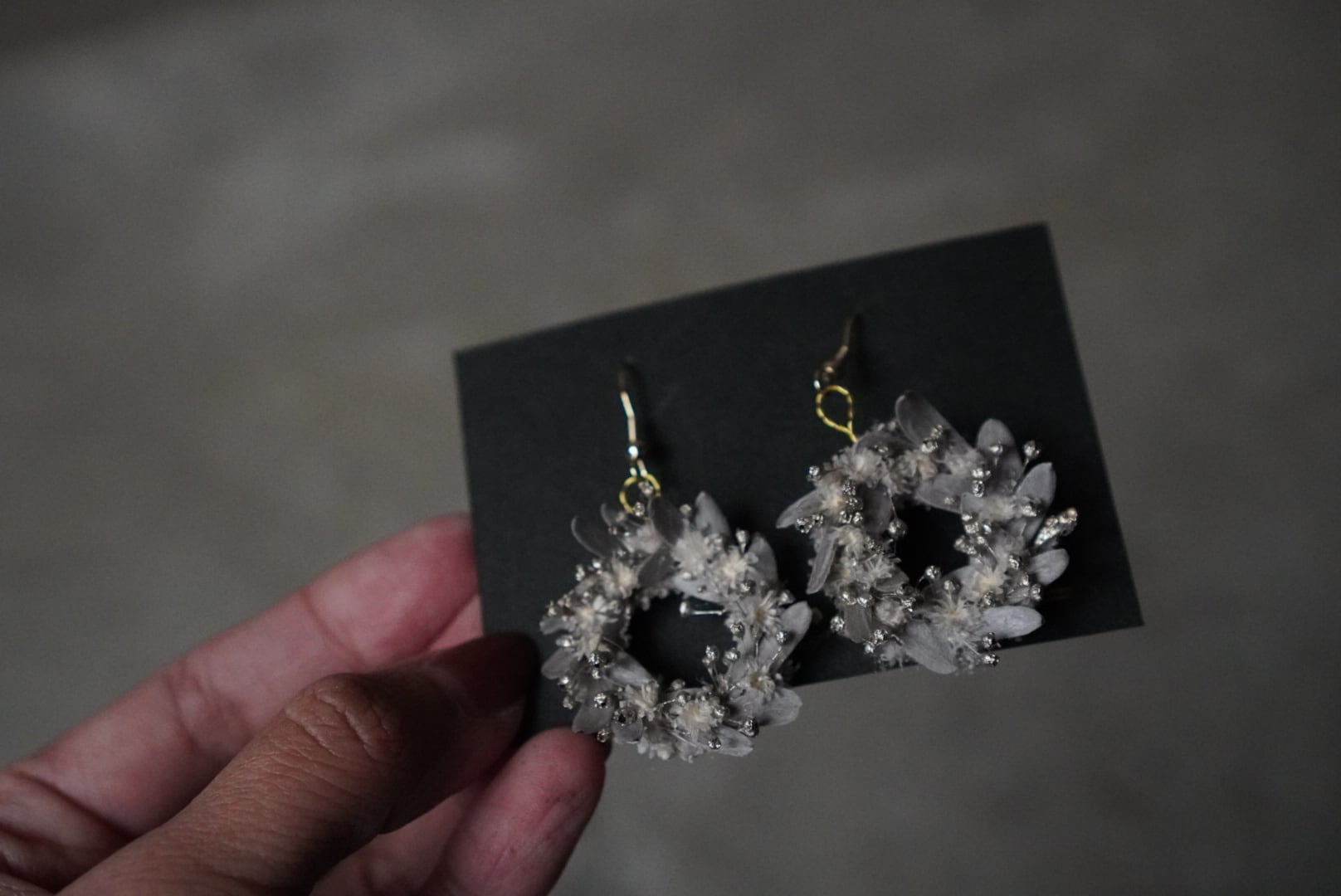 小さな直径3㎝のリースを、イヤーアクセサリーに仕立てました。